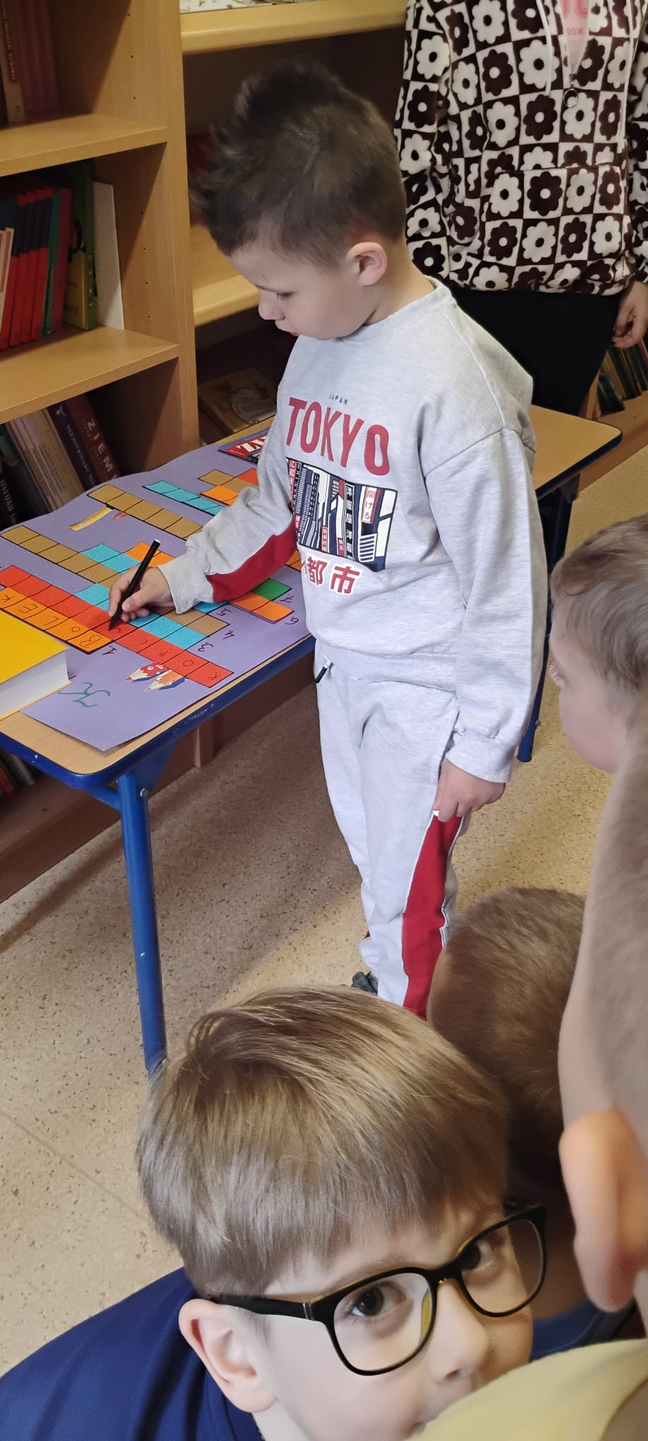 Uczniowie wiedzą, jak należy książki szanować i dbać o nie, aby długo służyły wszystkim dzieciom. Przyszli czytelnicy rozwiązali krzyżówkę z rozpoznawania bohaterów książeczek dla dzieci, rozpoznali tytuły książek po wysłuchaniu fragmentów książeczek czytanych przez Panią Janinę i ułożyli tytuły bajek z rozsypanek wyrazowych. Wykazują się świetną znajomością literatury dziecięcej, znają literki i potrafią już pięknie czytać.