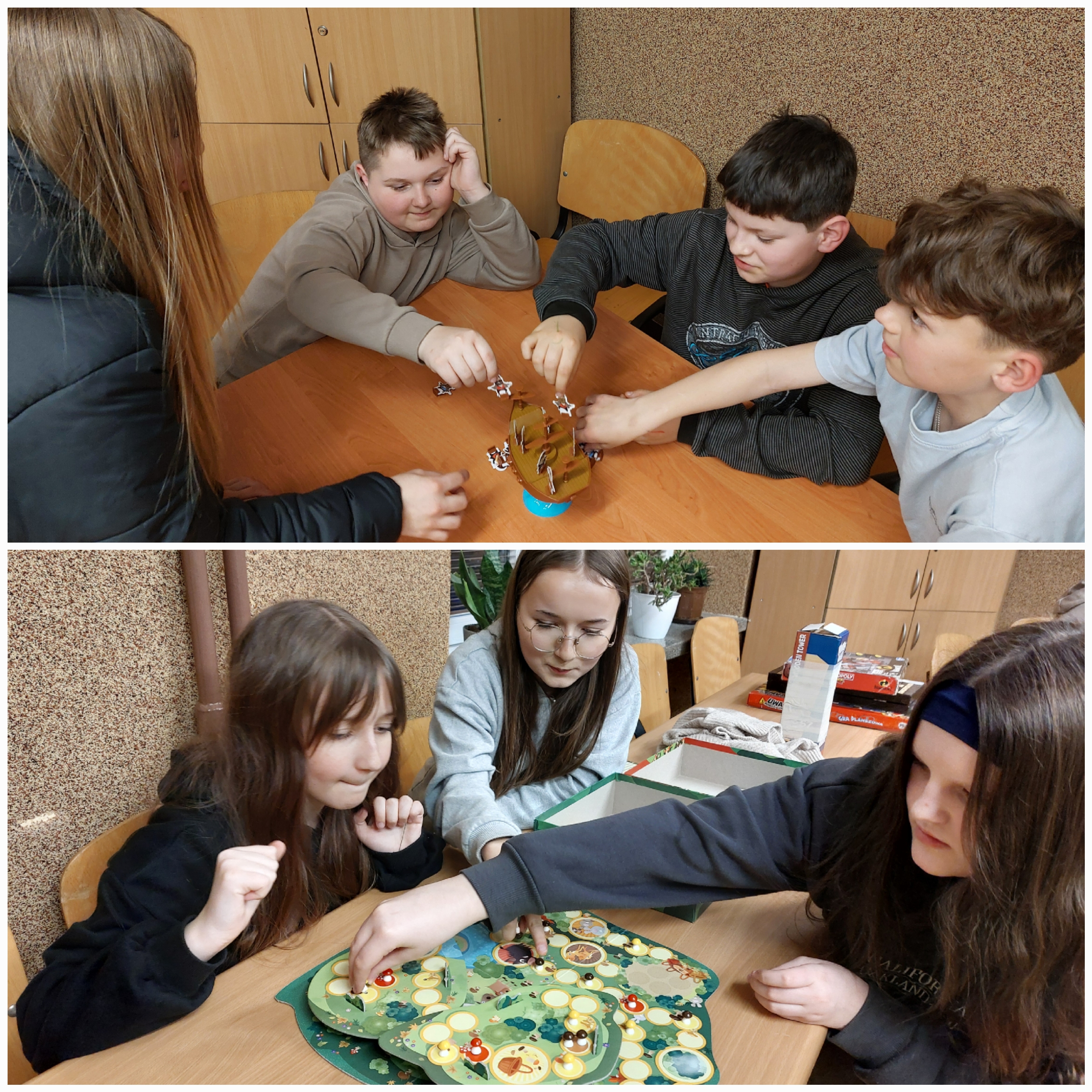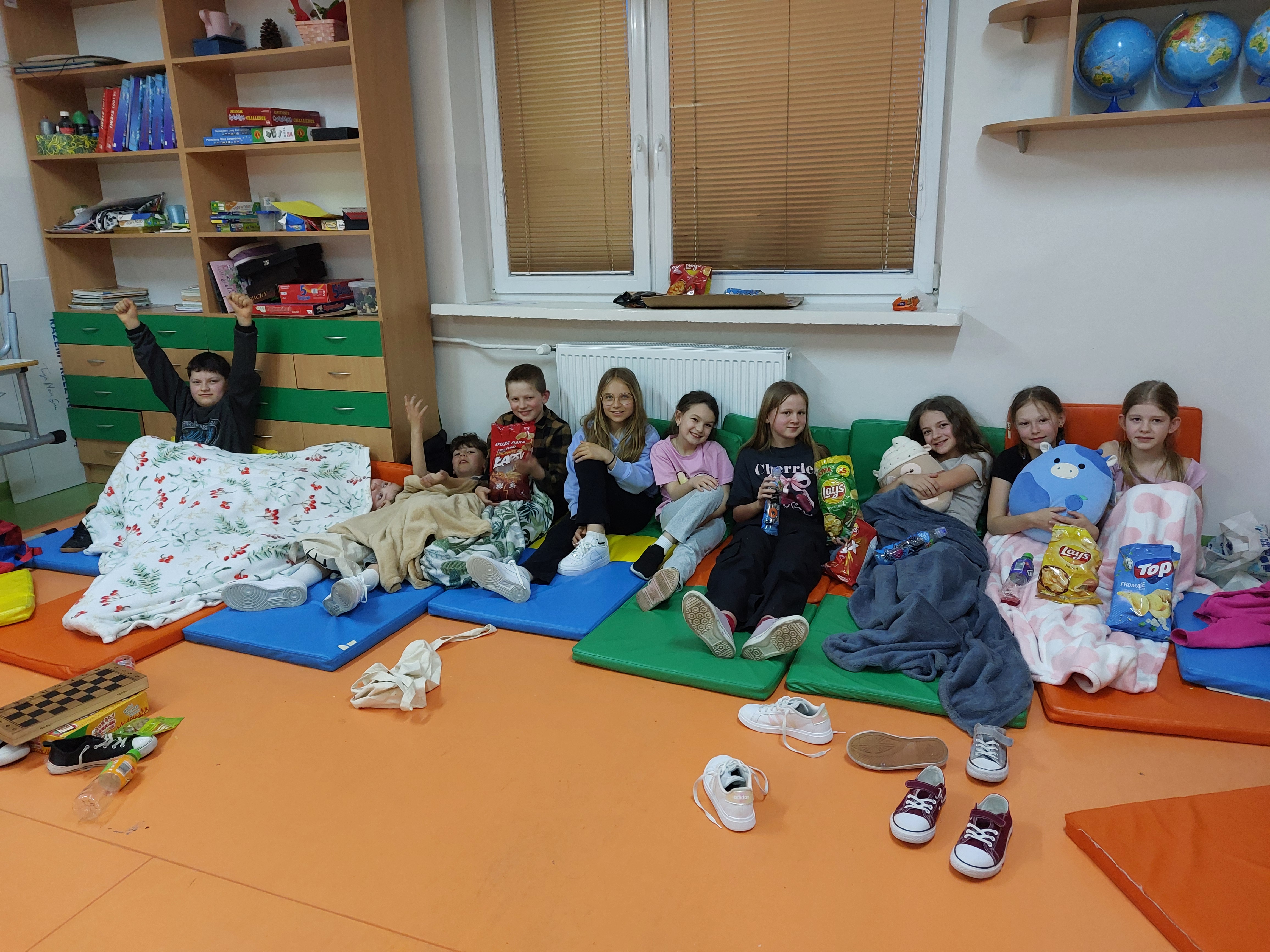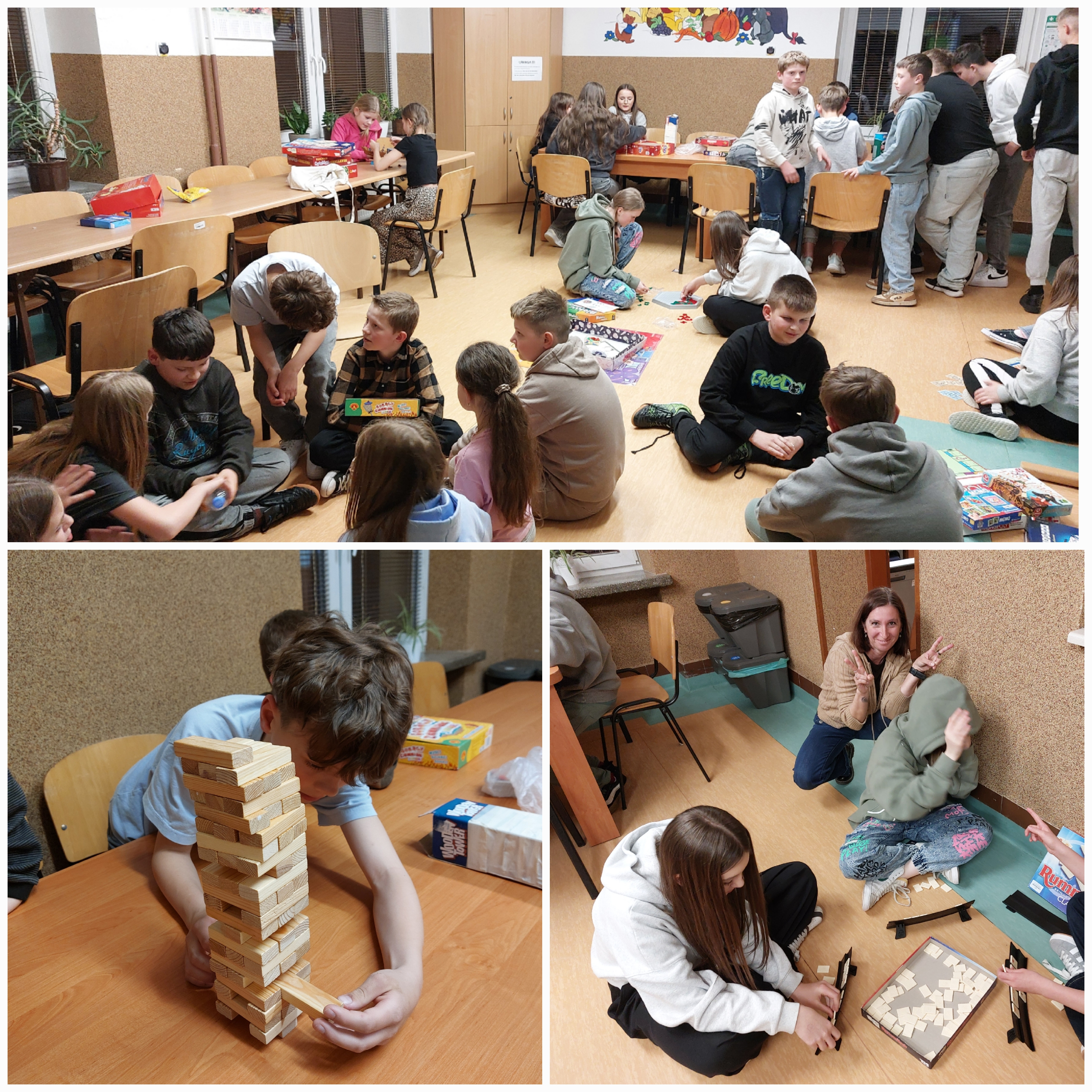 We wtorek 24 marca Samorząd Uczniowski pod opieką p. Moniki Staszyńskiej zorganizował wieczór filmowo-planszówkowy dla uczniów klas IV-VIII. Najpierw każda klasa w swojej sali obejrzała wspólnie wybrany film, a potem wszyscy spotkaliśmy się na jadalni, gdzie każdy znalazł dla siebie ciekawą grę. To świetny pomysł na spędzenie czasu razem, lepsze poznanie się, wspólną zabawę i integrację. W dobrej atmosferze czas szybko minął, pozostawiając niedosyt i chęć powtórki.