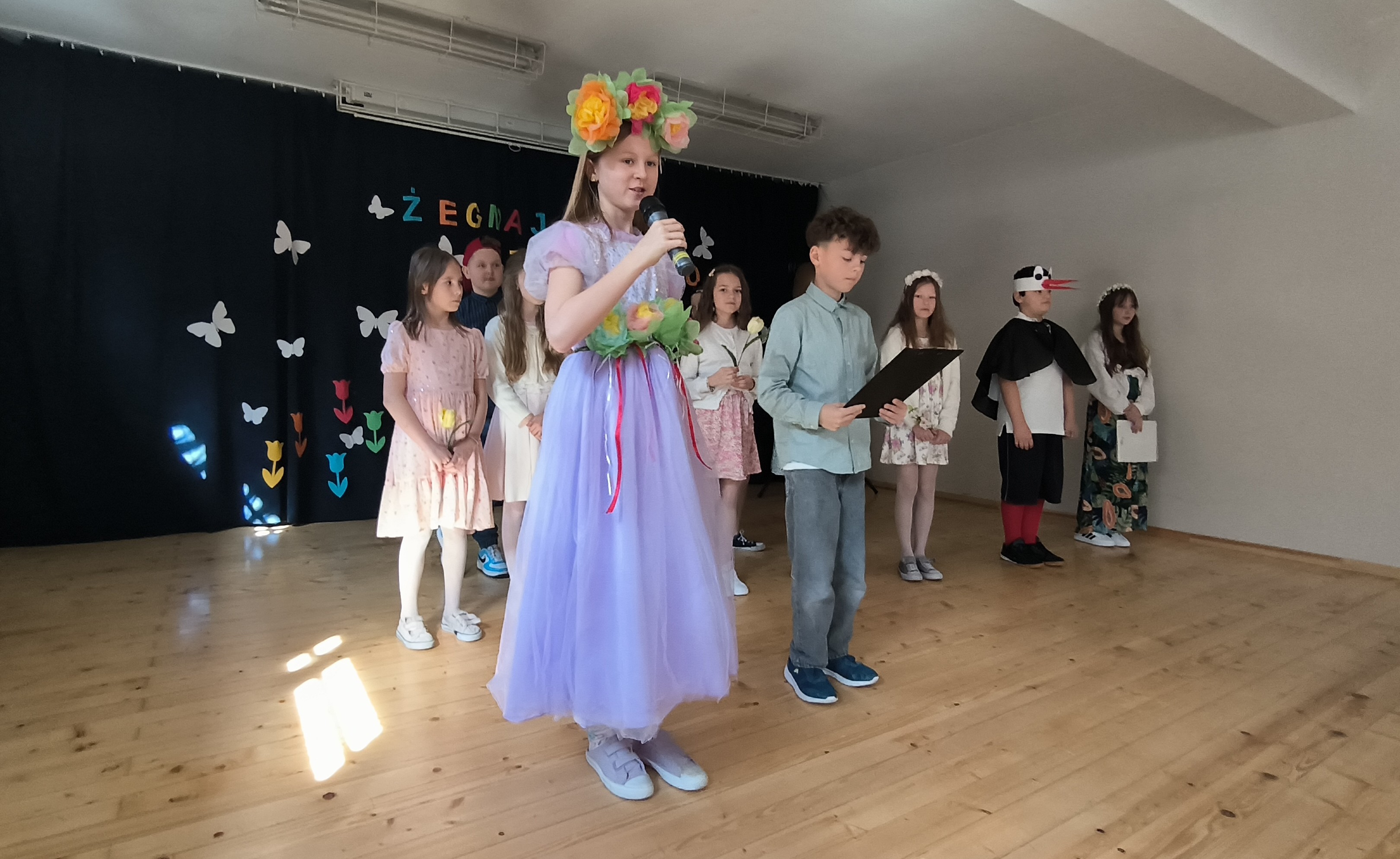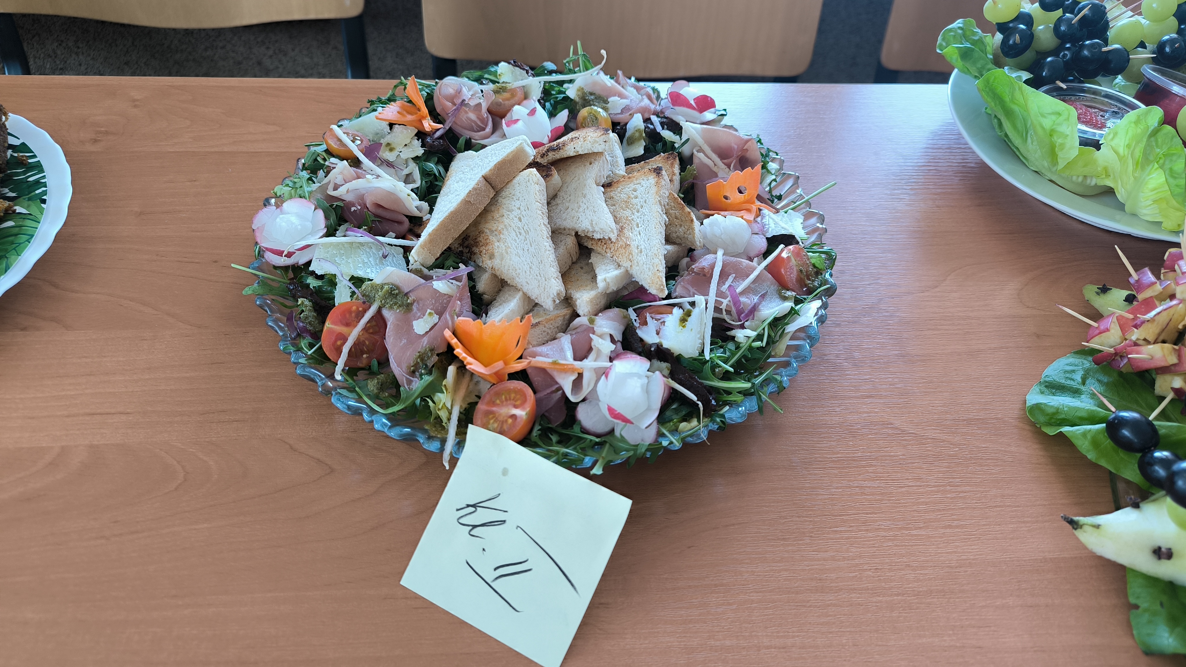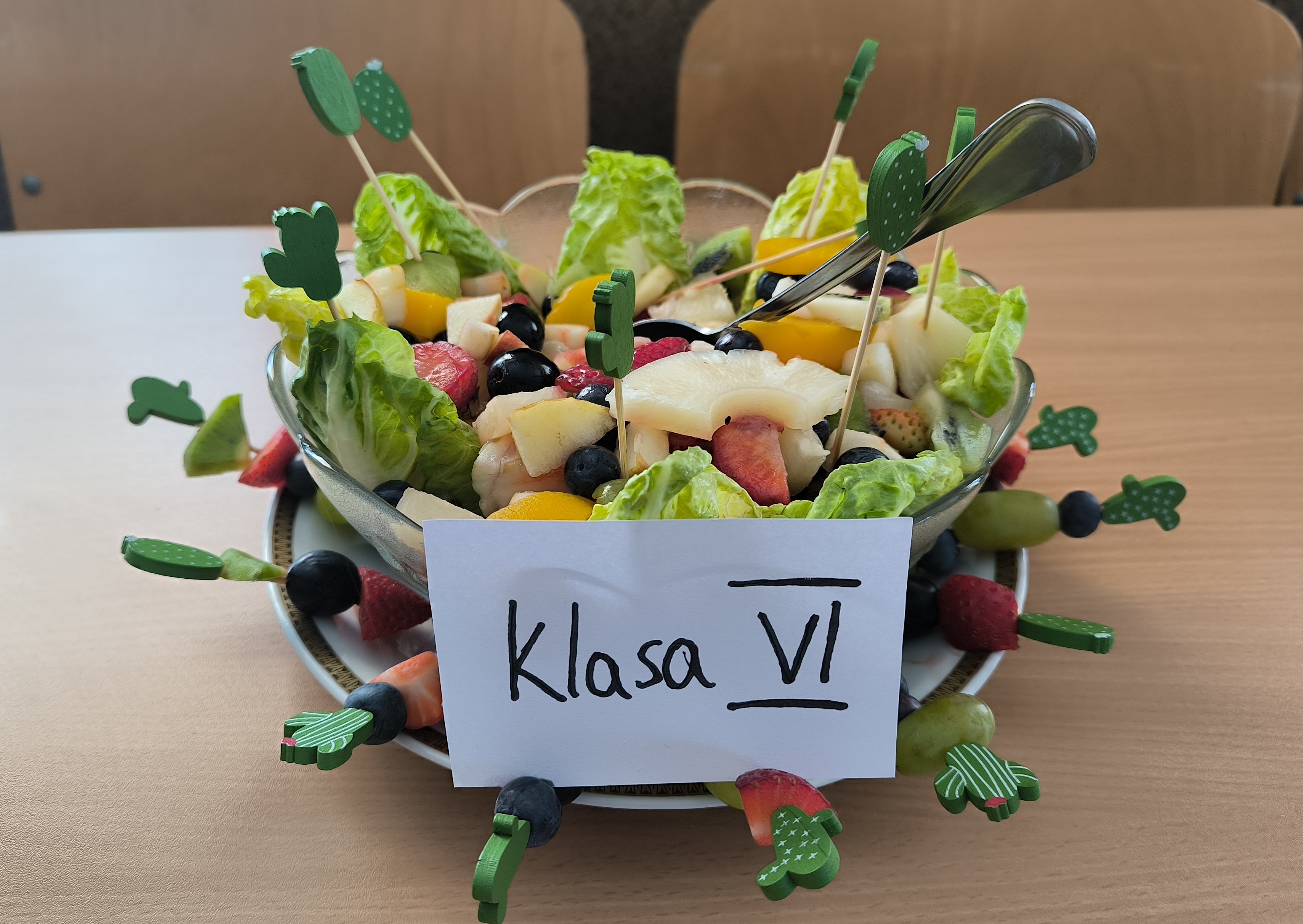 Najpierw uczniowie klasy IV w krótkiej scence przywitali przychodzącą Panią Wiosnę, a następnie nasza absolwentka, Amelia Szyszka, wygłosiła pogadankę o zdrowiu psychicznym, które jest równie ważne jak zdrowie fizyczne. Po prelekcji odbyło się wręczenie nagród w konkursie na Wiosenną Sałatkę. Już od rana bowiem w każdej klasie trwały przygotowania niezwykle pomysłowych, pięknych wizualnie, smacznych i zdrowych sałatek warzywnych lub owocowych. Efekty współpracy uczniów i rodziców wręcz zachwycały! Jury ostatecznie nagrodziło dwie klasy: