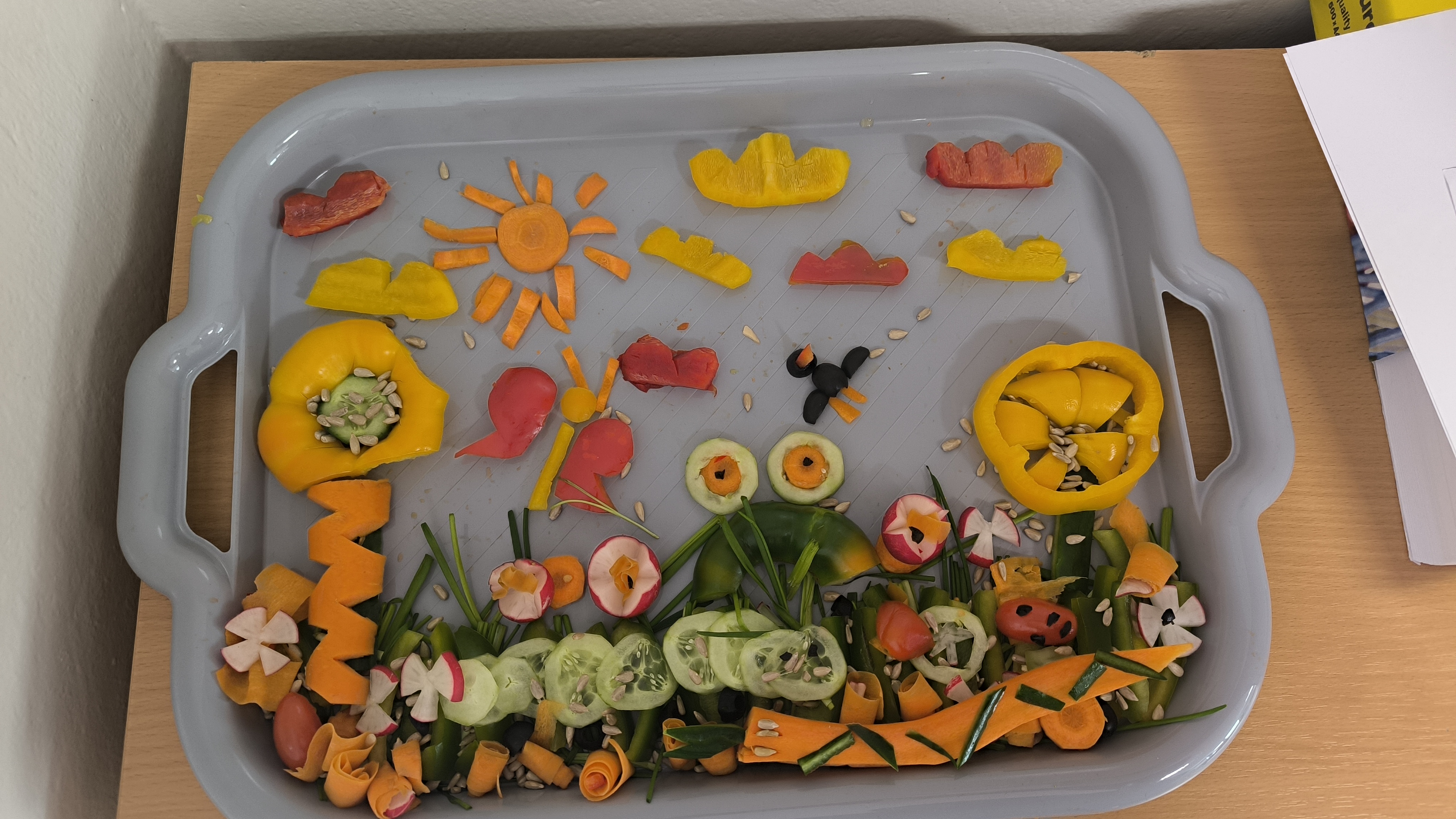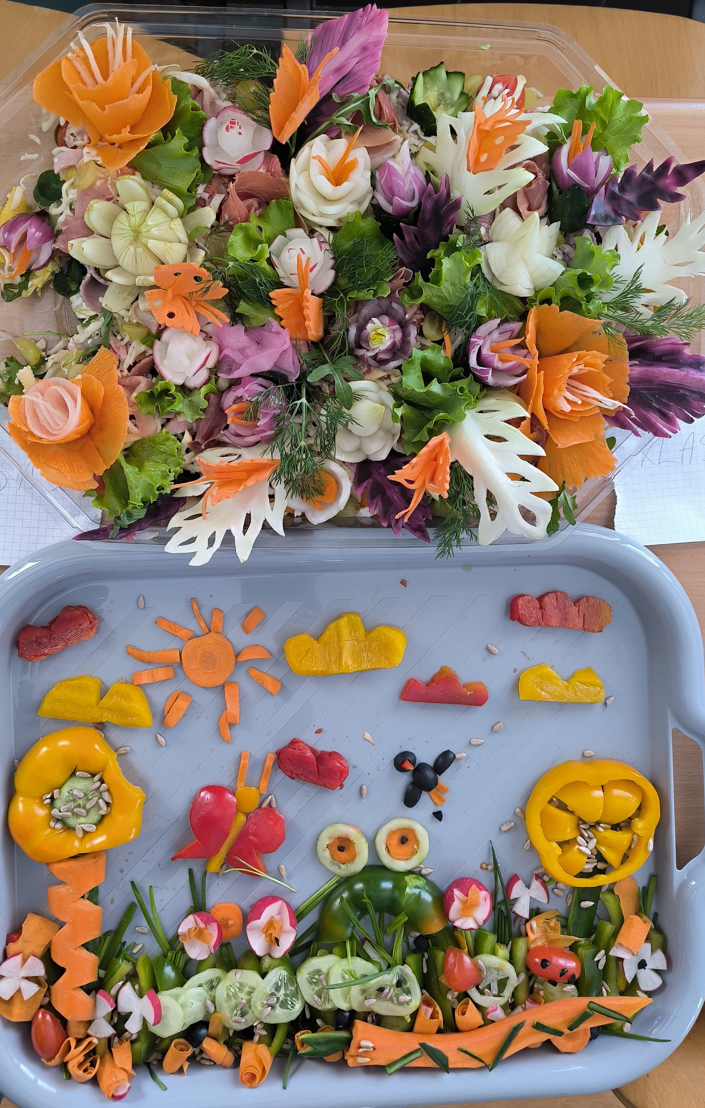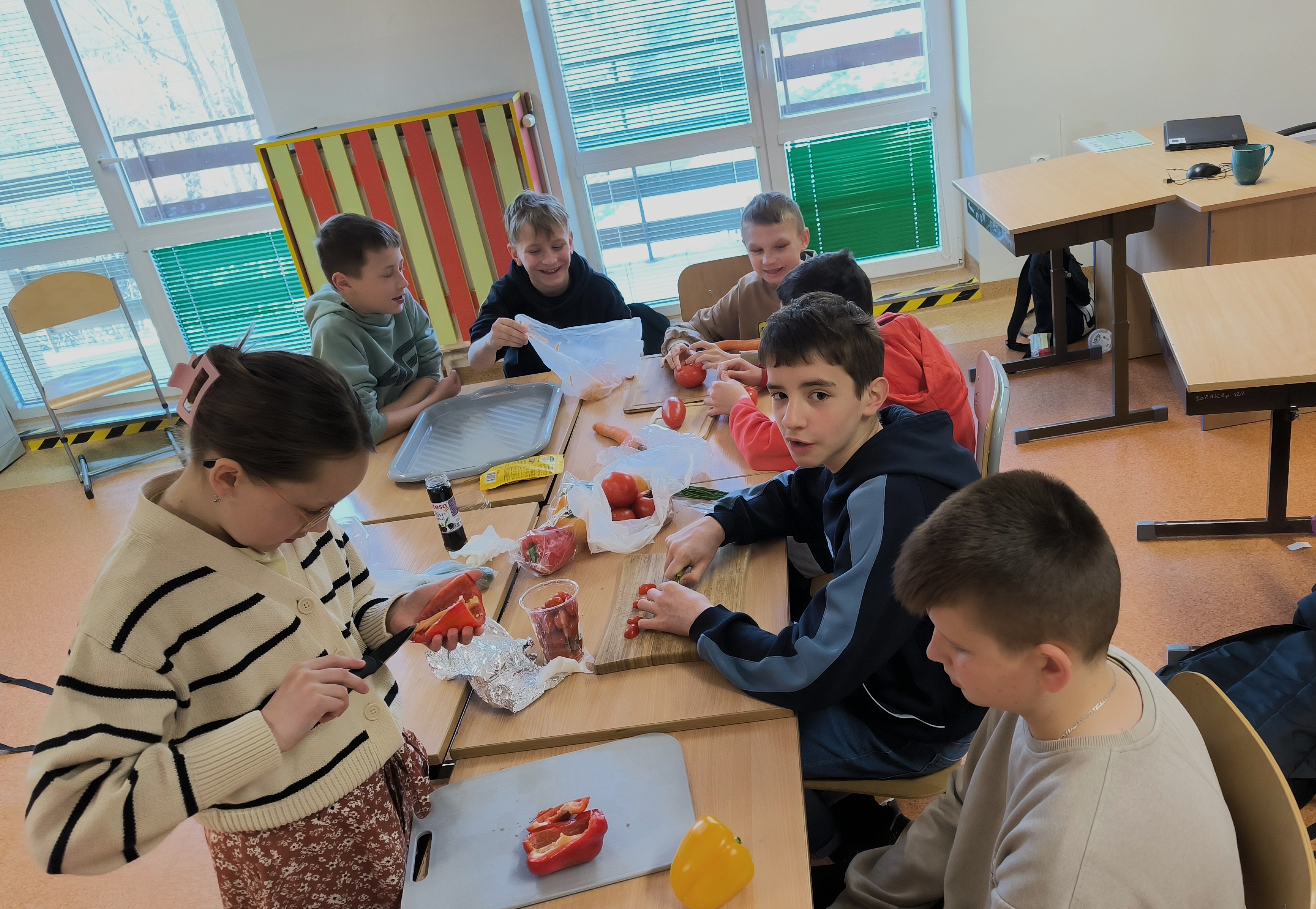 Najpierw uczniowie klasy IV w krótkiej scence przywitali przychodzącą Panią Wiosnę, a następnie nasza absolwentka, Amelia Szyszka, wygłosiła pogadankę o zdrowiu psychicznym, które jest równie ważne jak zdrowie fizyczne. Po prelekcji odbyło się wręczenie nagród w konkursie na Wiosenną Sałatkę. Już od rana bowiem w każdej klasie trwały przygotowania niezwykle pomysłowych, pięknych wizualnie, smacznych i zdrowych sałatek warzywnych lub owocowych. Efekty współpracy uczniów i rodziców wręcz zachwycały! Jury ostatecznie nagrodziło dwie klasy: