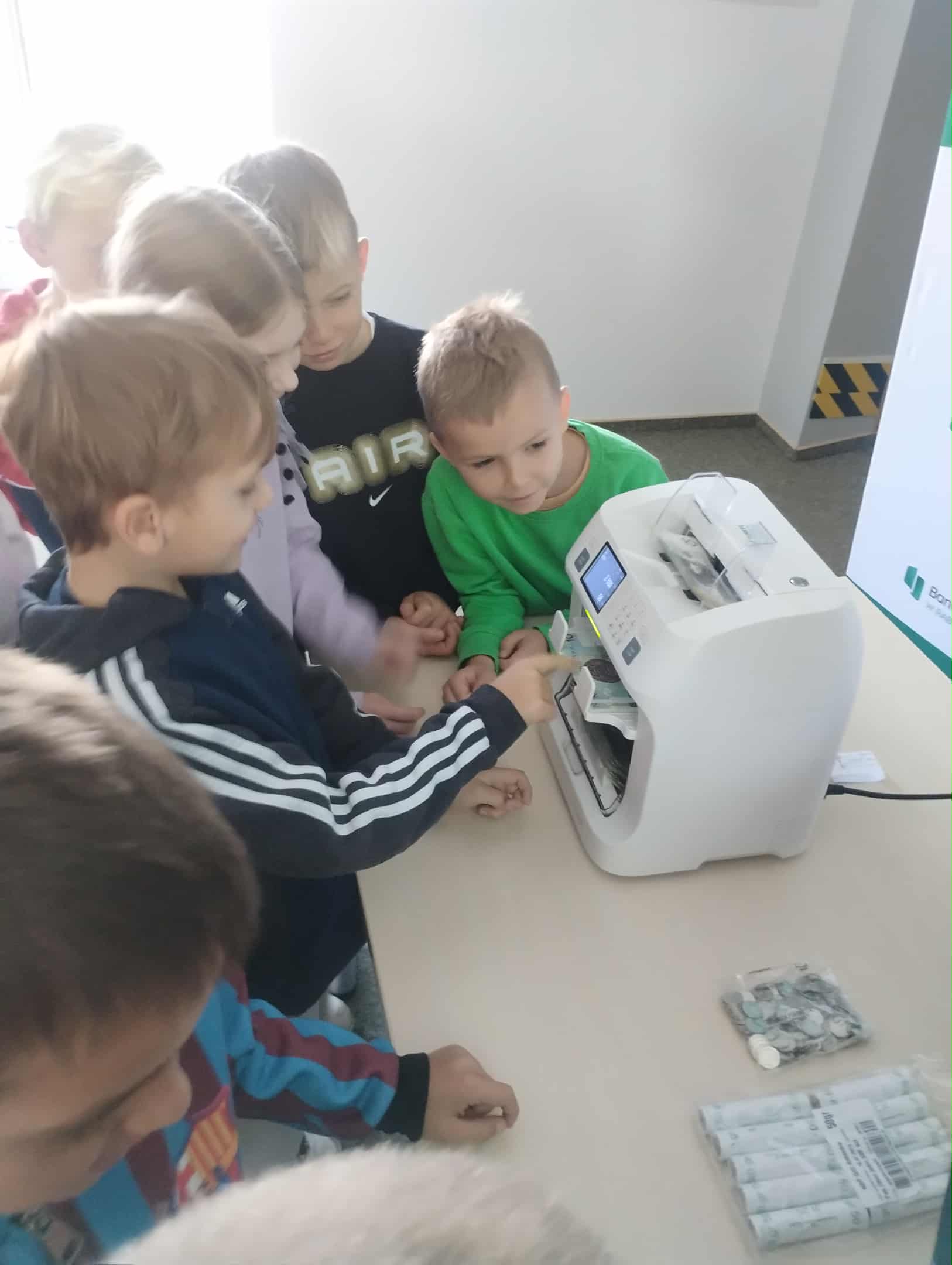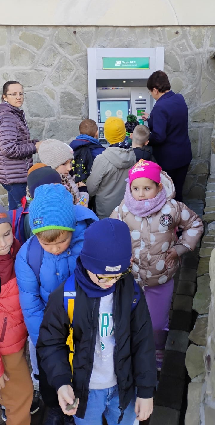 Na zakończenie odbył się pokaz działania bankomatu. Dzieci poznały zasady bezpiecznego korzystania z karty płatniczej, dowiedziały się, czym jest PIN i dlaczego należy go chronić. Miały możliwość dokonania wpłat i wypłat w bankomacie.