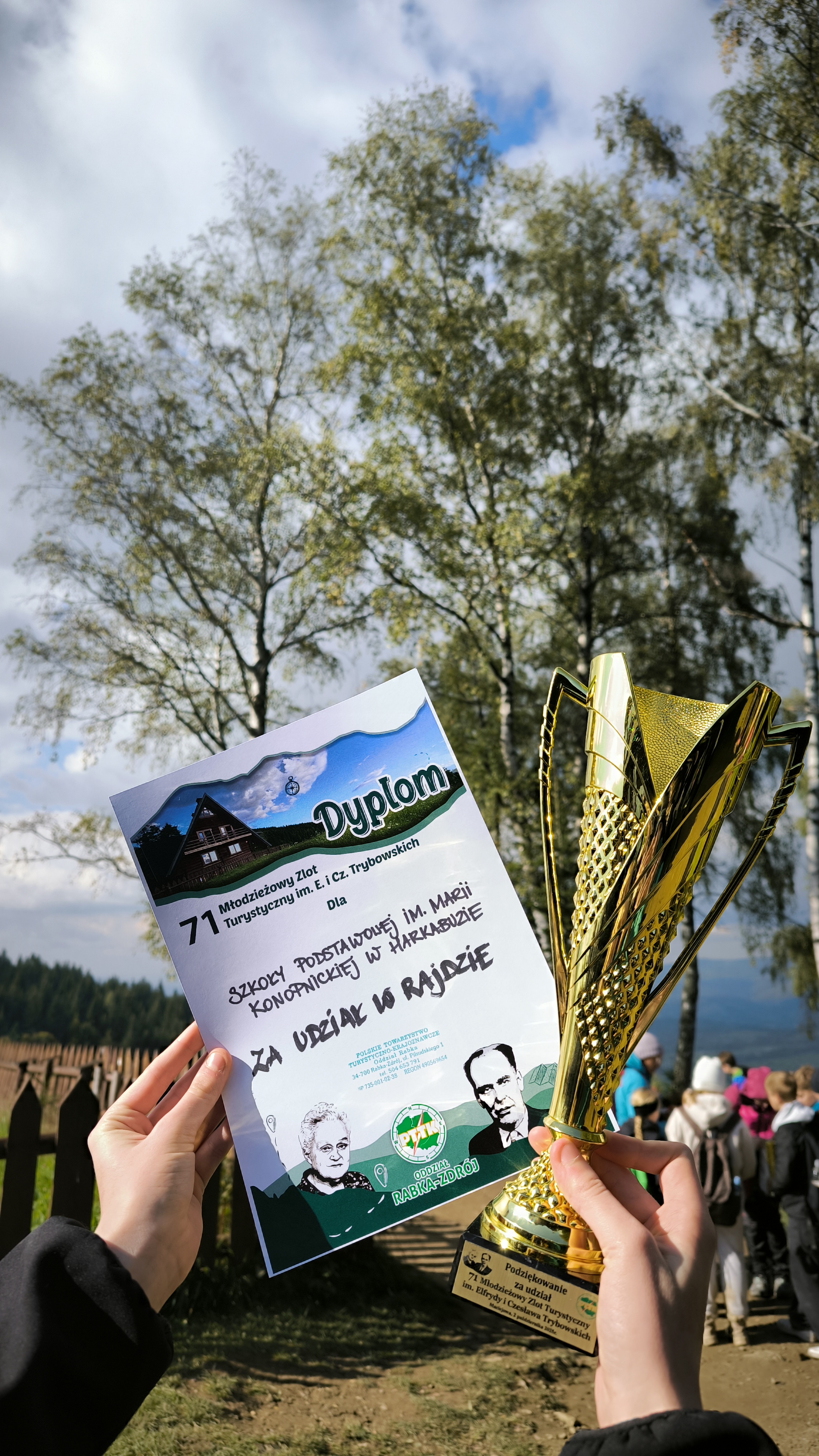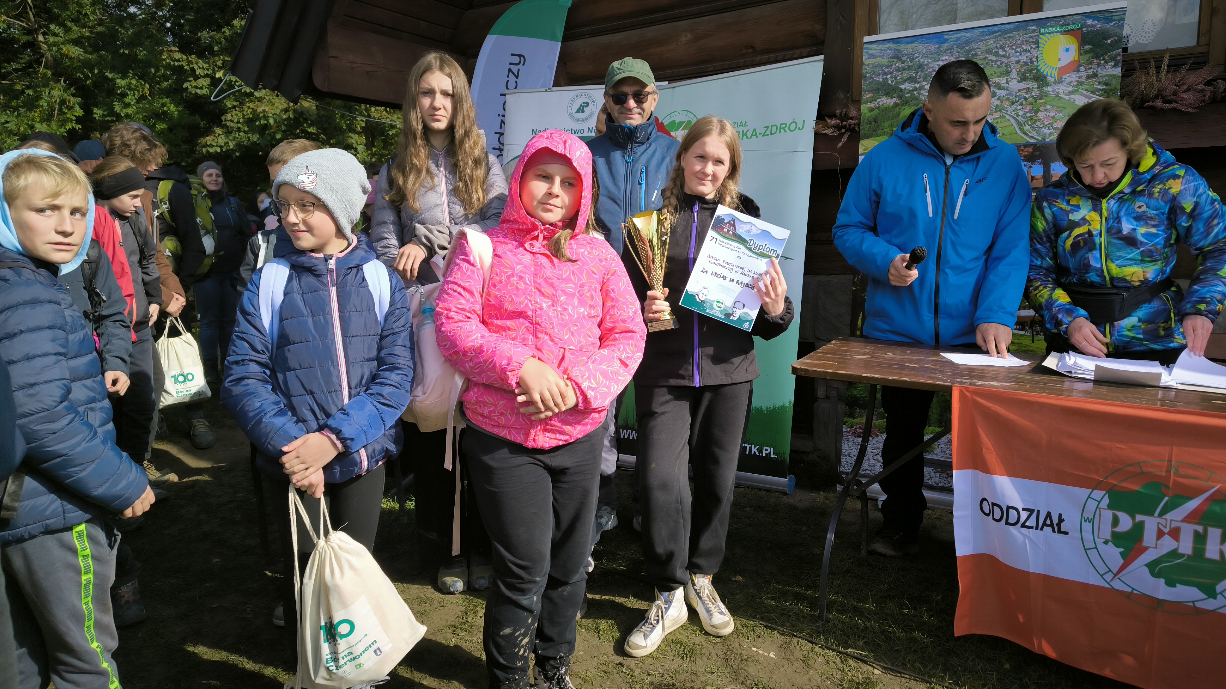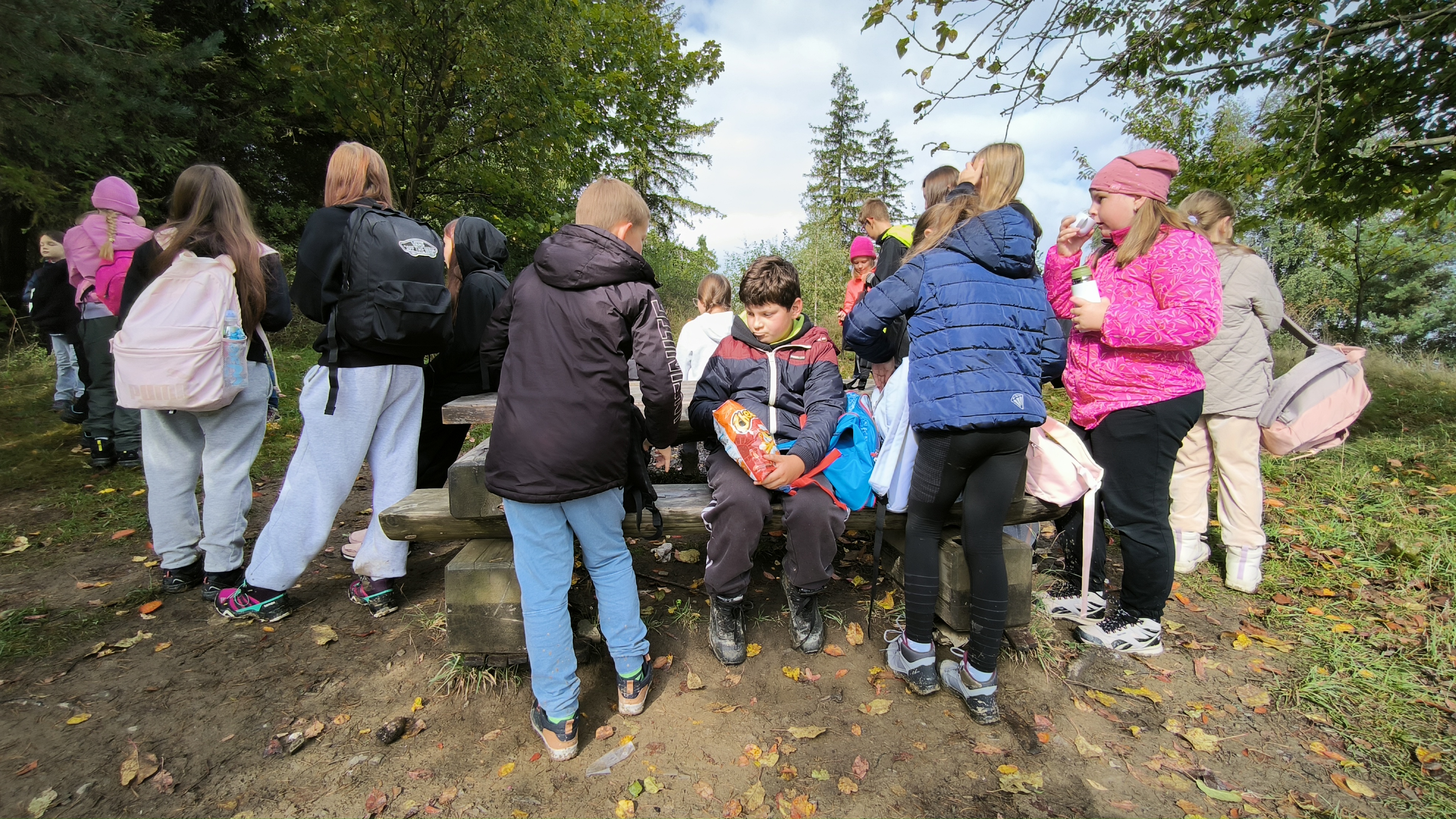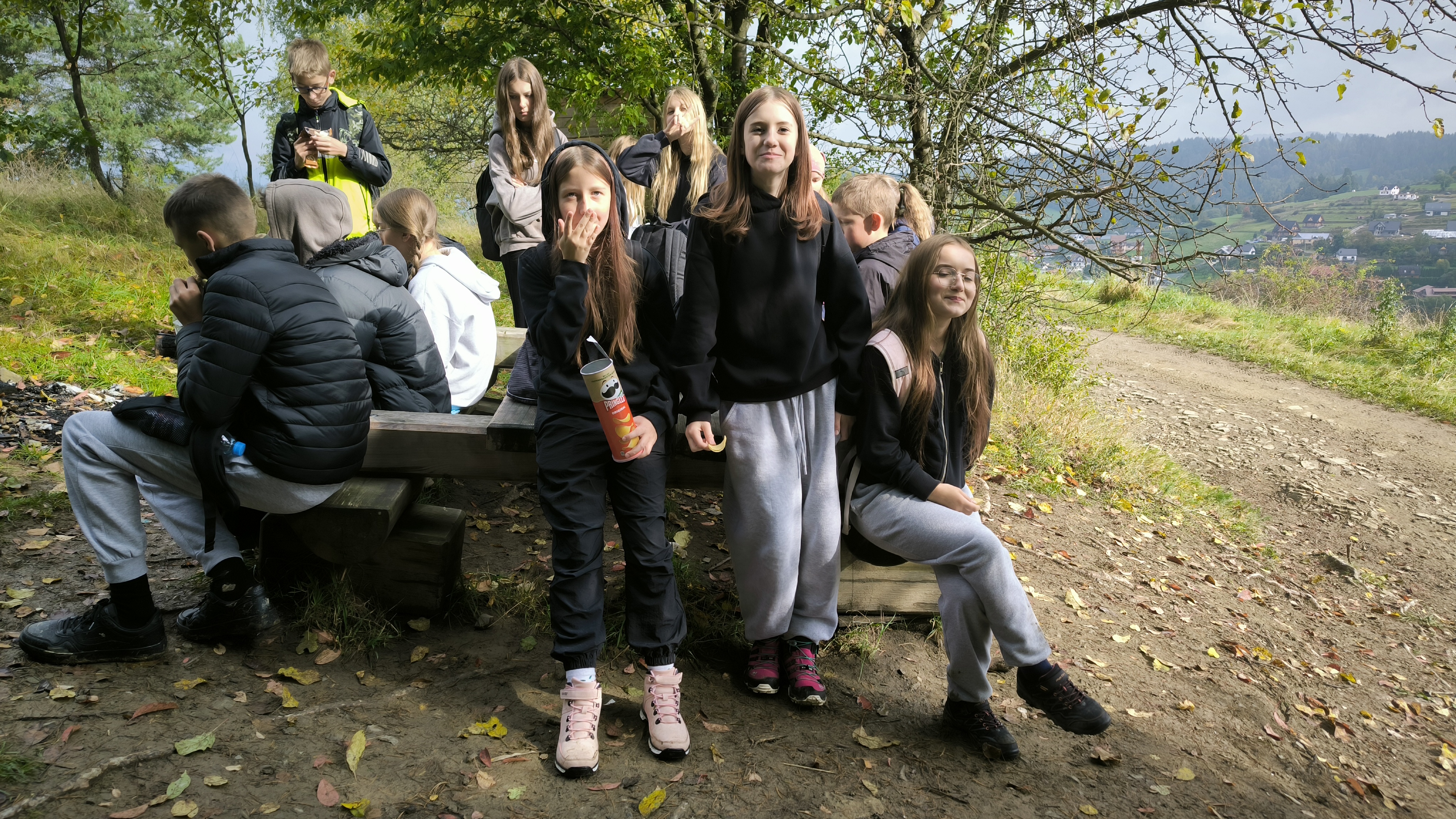 W czwartek 2 października większość uczniów z klas IV-VIII udała się na zakończenie 71. Zlotu Turystycznego im. Trybowskich, które w tym roku miało miejsce przy bacówce na Maciejowej. Mimo niskiej temperatury, mimo rozległych kałuż i błotnistego szlaku, wszyscy dotarli na miejsce. Czekał tam na nas ciepły posiłek i przytulny kącik w schronisku z bardzo przyjacielskim kotem na dodatek. Przedstawicielki klasy IV - Laura, Zuzia i Amelka - wzięły udział w turnieju wiedzy o Beskidach reprezentując grupę młodszą, zaś uczniowie klasy V - Ola, Justyna i Mateusz - reprezentowali grupę starszą. Miło nam poinformować, że dziewczyny z klasy IV zajęły II miejsce, a piątoklasiści - V miejsce. Ogólnie zaś w całościowej konkurencji (trasa+ilość osób+turniej) klasa IV zajęła III miejsce - gratulacje! Miejmy nadzieję, że za rok aura będzie zdecydowanie bardziej sprzyjająca i uda nam się wyruszyć w dwudniową trasę.