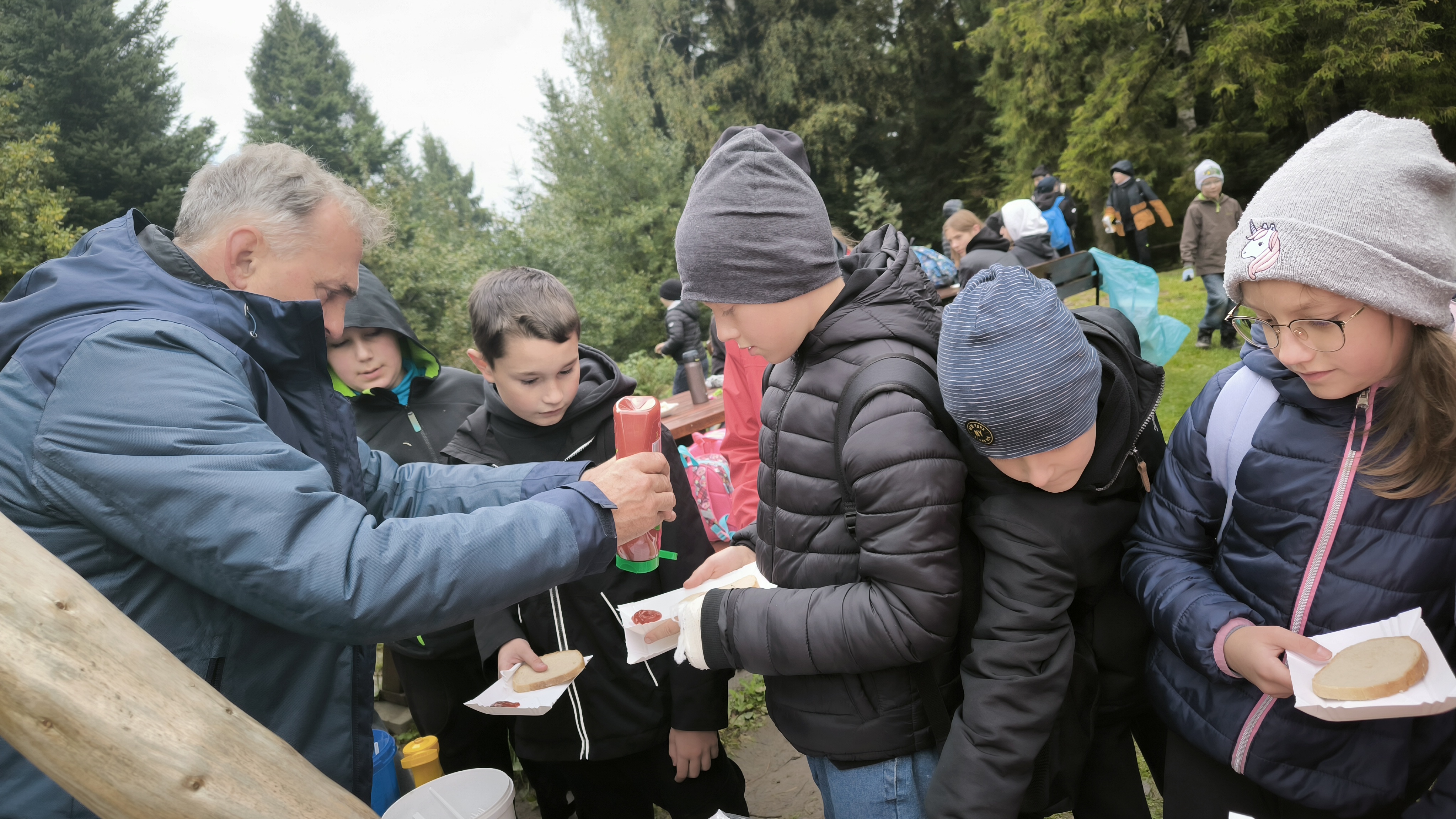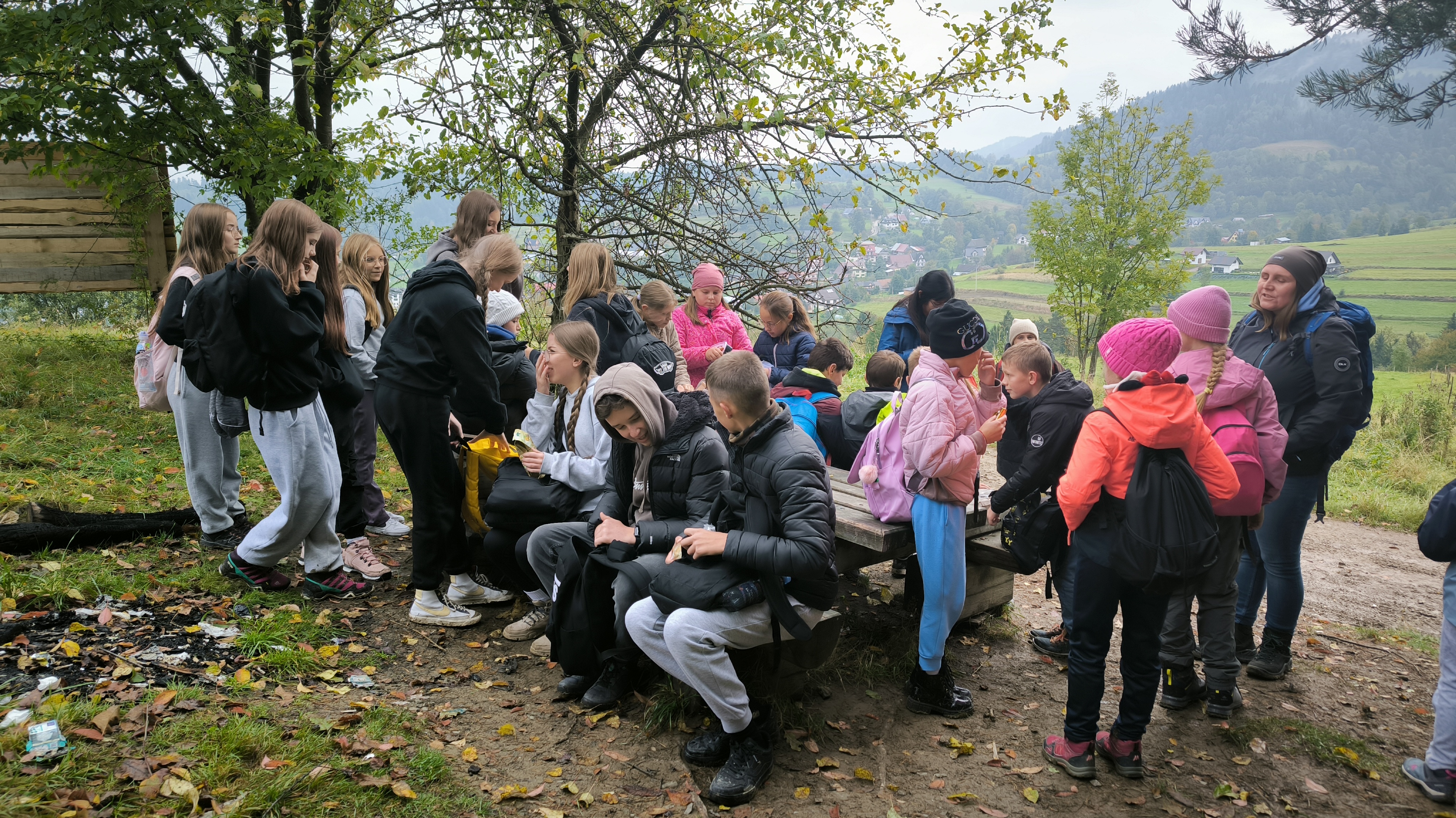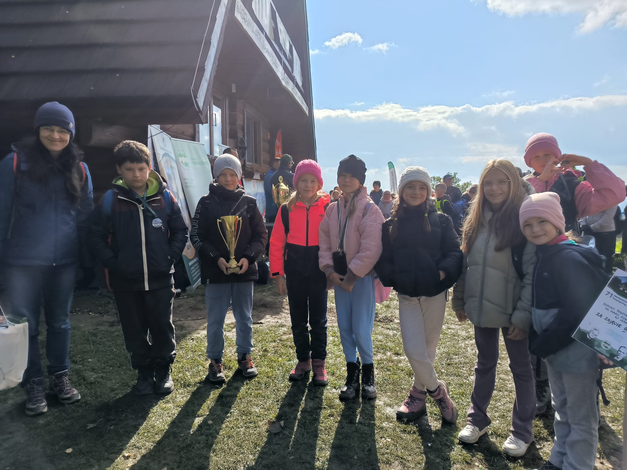W czwartek 2 października większość uczniów z klas IV-VIII udała się na zakończenie 71. Zlotu Turystycznego im. Trybowskich, które w tym roku miało miejsce przy bacówce na Maciejowej. Mimo niskiej temperatury, mimo rozległych kałuż i błotnistego szlaku, wszyscy dotarli na miejsce. Czekał tam na nas ciepły posiłek i przytulny kącik w schronisku z bardzo przyjacielskim kotem na dodatek. Przedstawicielki klasy IV - Laura, Zuzia i Amelka - wzięły udział w turnieju wiedzy o Beskidach reprezentując grupę młodszą, zaś uczniowie klasy V - Ola, Justyna i Mateusz - reprezentowali grupę starszą. Miło nam poinformować, że dziewczyny z klasy IV zajęły II miejsce, a piątoklasiści - V miejsce. Ogólnie zaś w całościowej konkurencji (trasa+ilość osób+turniej) klasa IV zajęła III miejsce - gratulacje! Miejmy nadzieję, że za rok aura będzie zdecydowanie bardziej sprzyjająca i uda nam się wyruszyć w dwudniową trasę.