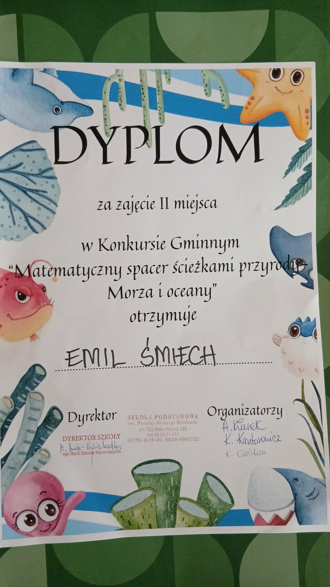 Naszą szkołę reprezentował uczeń klasy trzeciej Emil Śmiech, który zdobył II miejsce!